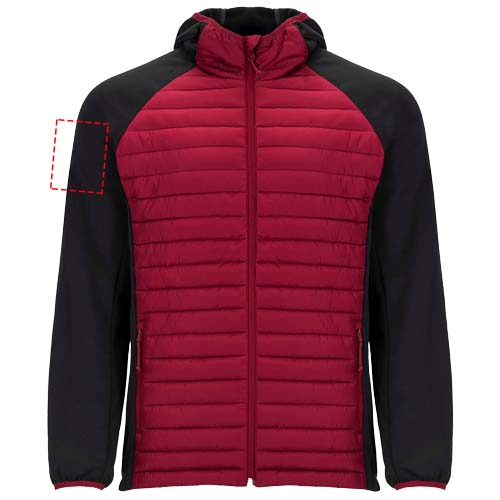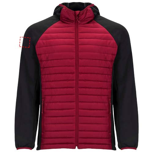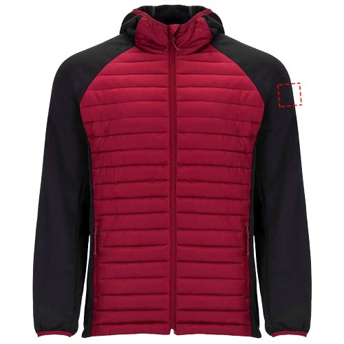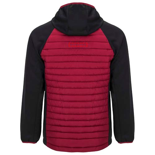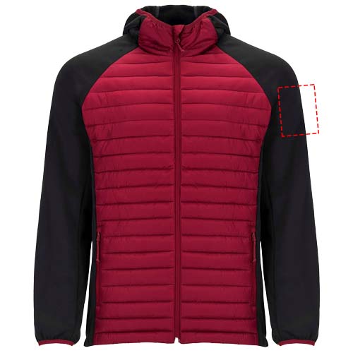 Unisex Jacke Zwei-Stoff-Kombination. Nicht abnehmbare Kapuze. Raglanärmel. Ärmel, Seiten und Kapuze aus Softshell-Material. Gestepptes Gewebe, Federtakt auf Vorder- und Rückenteil. Umgekehrter Reißverschluss mit Kinnschutz und Zipper. Zwei Fronttaschen mit Reißverschluss. Elastische Bündchen an Kragen, Ärmeln und Saum. Herausnehmbares Etikett. Winddichtes Modell. Das männliche Modell ist 184 cm groß und trägt Größe L, das weibliche Modell ist 179 cm groß und trägt Größe S.